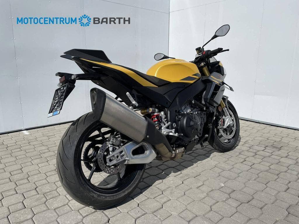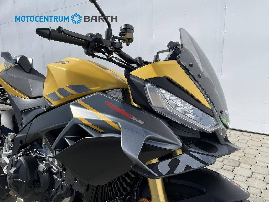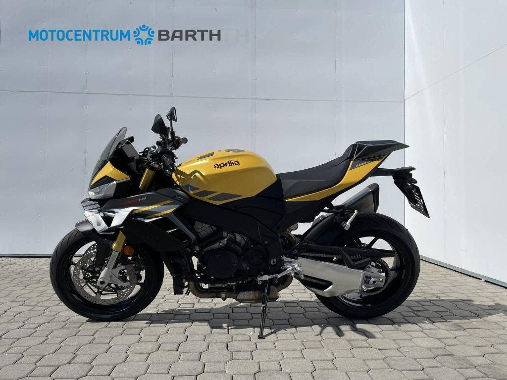Aprilia Tuono V4 kombinuje sportovní výkon s výjimečnou ovladatelností i na běžné silnici. Díky motoru V4 E5+ o výkonu 180 koní, sebevědomé ergonomii, integrovaným křídlům pro lepší stabilitu a přizpůsobitelnému balíčku elektroniky a-PRC je všestrannější a dravější než kdykoli předtím.