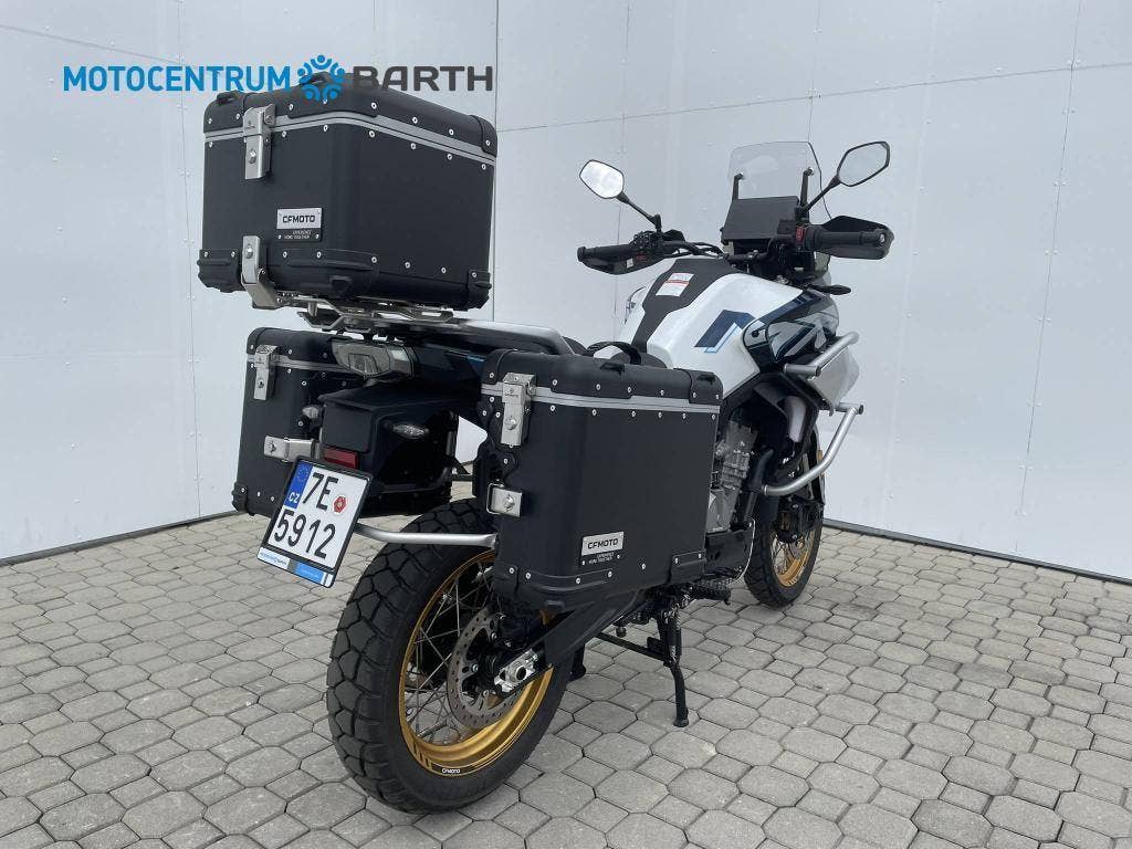Součástí ceny je příslušenství: nosiče bočních kufrů, sada tří hliníkových černých kufrů., Posuňte své limity odhodlání a odvahy. Vydejte se na místa, která vám mohla dříve připadat nedosažitelná. Neomezujte vaši představivost vzdáleností a zdánlivou obtížností cesty. CFMOTO 800MT Explore vám pomáhá dosáhnout vašeho cíle co nejpříjemnějším způsobem.