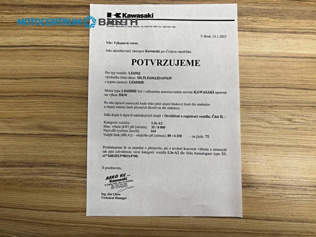 Motocykl zakoupený jako nový v ČR, 2.majitel, nehavarovaný, pravidelně servisovaný v autorizovaném servise Kawasaki - doloženo originální servisní knížkou , poslední servis byl 31.3.2025 na 10.936 km, velmi dobrý technický i vizuální stav . Verze s výkonem 35 kw - možno řídit s ŘP skupina A2 od 18ti let.