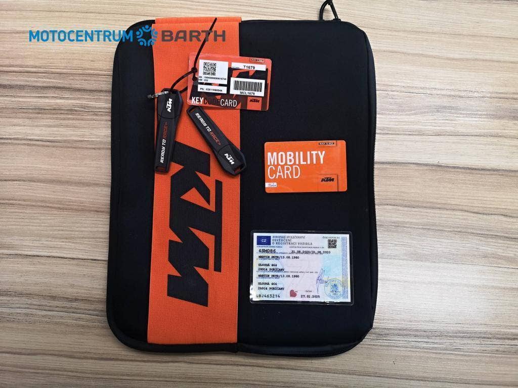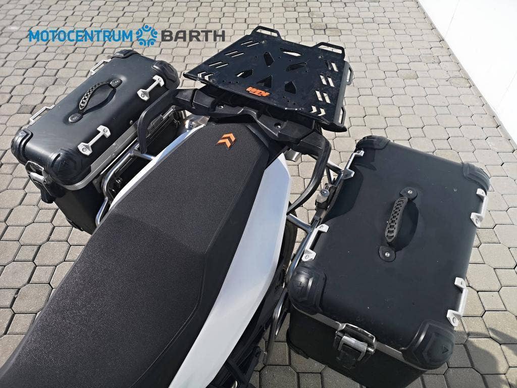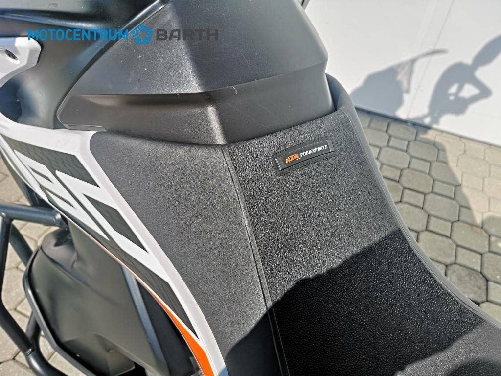 Doplňky : vyhřívaná rukojeti , komfortní sedlo originál KTM Powerparts , nosič zadního kufru, nosiče bočních kufrů, oba boční hliníkové kufry originál KTM , vyšší plexy štít, kompletní sada padacích rámů, 12V zásuvka , laděný výfuk Akrapovič , originál výfuk je k motorce , aplikace KTM MY RIDE, Počet míst k sezení: 2