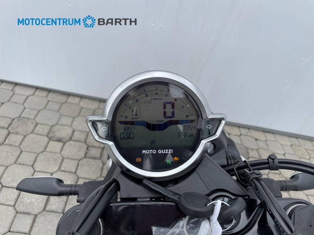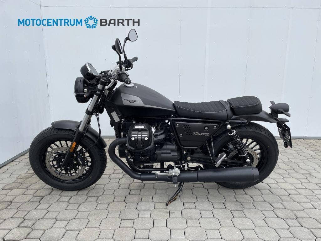 Tmavý a nezkrotný jako noc . Minimalistický a nekompromisní vzhled umocňují 16“ matně černá kola, zdobená šedým logem Moto Guzzi, a kovové boční panely, výfuková soustava, zrcátka a zadní blatník.