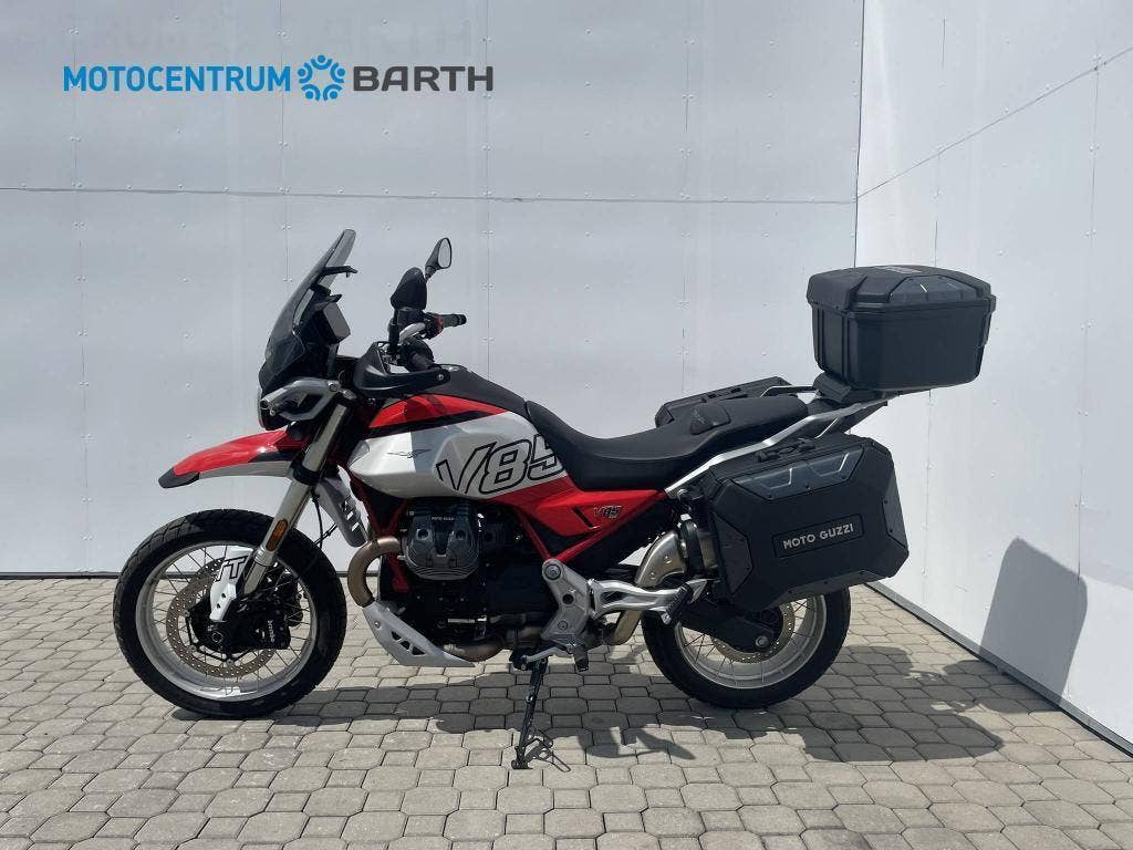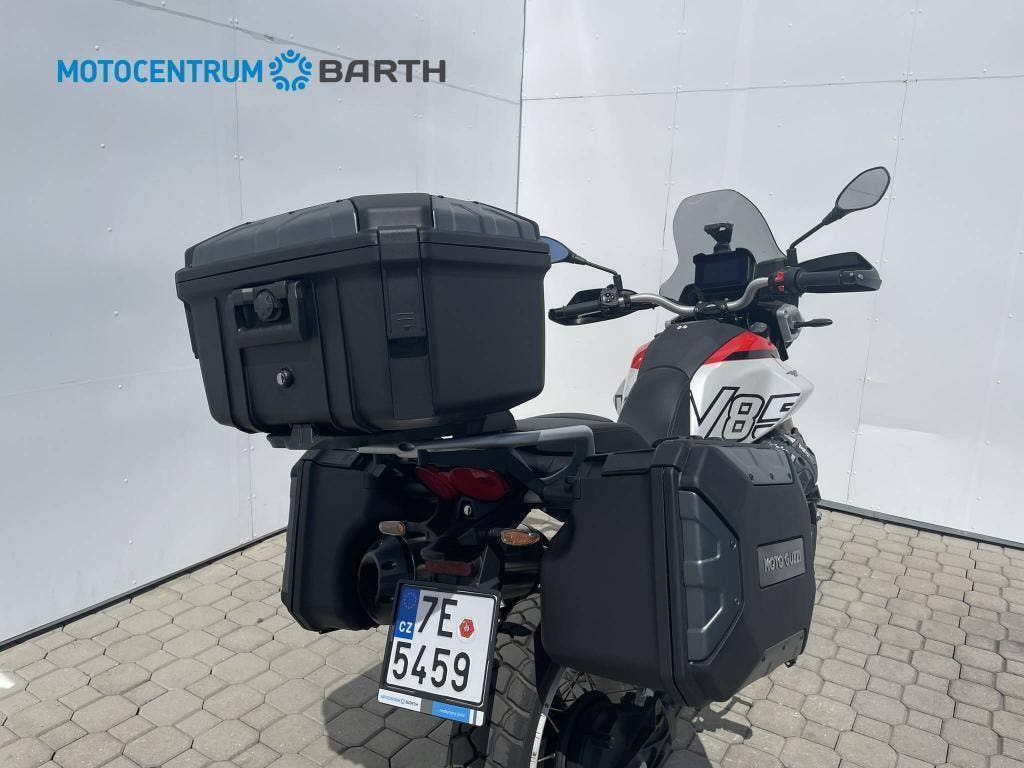 - Černé boční plastové kufry Moto Guzzi Urban, Nový model V85 TT, který je poctou dobrodružství v tom nejčistším slova smyslu, je navržen tak, aby zvládl jakoukoli výzvu. Spojením nejnovějších inovací, maximální úrovně komfortu a velkolepého dědictví značky Moto Guzzi vznikl motocykl, který přináší styl, funkčnost, robustnost a vynikající výkon, a nyní splňuje normu Euro 5+.