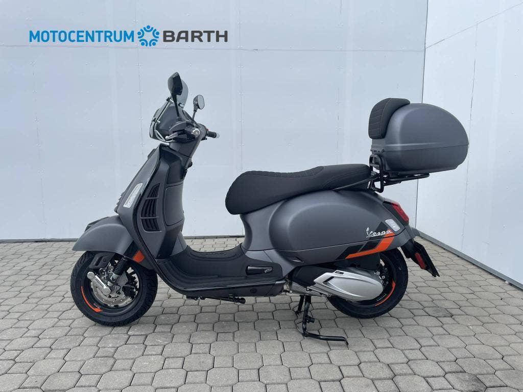 Součástí motocyklu: TOPCASE, nosič na TOPCASE, koberec do kufru, plexy kouřové, gumový koberec., Vespa Gts je Grand Tourer navržený tak, aby na silnice přinesl kouzlo autentické italské ikony. Seznam se s elegantním společníkem na cesty, který má ovšem drsnou sportovní duši a je připraven vzít tě za dobrodružstvím s maximálním pohodlím, pro výjimečný zážitek z jízdy plný technologických vychytávek.